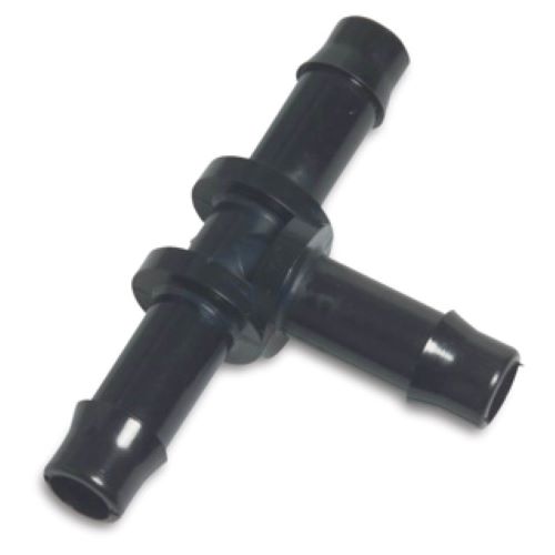 Hard Black plastic T-piece hose tail fitting suitable for connecting to PVC hose. Connection: hose tail x hose tail x hose tail Max. Temp.: 40deg C Size: 13mm x 13mm x 13mm