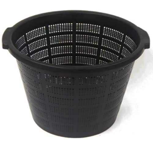 Betta Pond Plant Baskets are made from black plastic with meshed sides. These mesh sides allow water into the roots of the plant enabling them to obtain the nutrients that they need. It is best to line out the basket with hessian (YD050 Pond Plant Basket Hessian Squares) to prevent finer soil from falling through. After planting, top-dress with gravel to discourage fish from disturbing the plant roots.