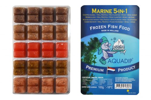 The Aquadip Marine 5 in 1 blister pack contains five separately packed fish foods in one blister pack. Namely: Mussel meat, krill pacifica, red plankton, mysis and brine shrimp. The handy blister pack makes portioning easy and allows for quick defrosting, the pack contains 20 cubes; each cube is scored so it can easily be broken into two cubes! This food is Gamma irradiated to ensure it is pathogen free.