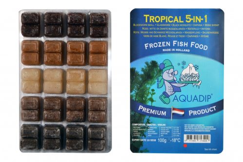 - Frozen Tropical Quintet fish food is available in 100g blister packs.