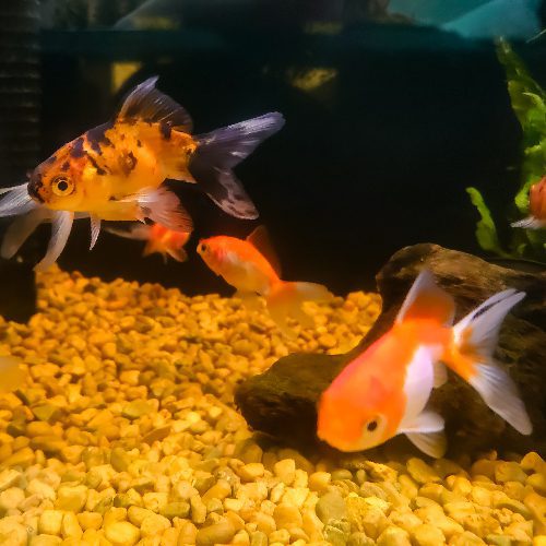During the warmer months of the year, they can be kept outdoors into raised ponds, but appropriate protection must be added to prevent predators from being able to catch them. Fancies are sociable fish and should be kept in groups with their own kind or any other fancy goldfish. Comets should be avoided as they are much faster and will outcompete the Orandas for food.