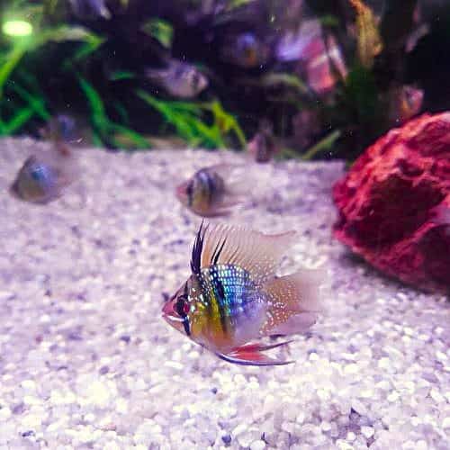 Frequent partial water changes are essential to the wellbeing of the German Ram as they are incredibly sensitive to Nitrates. Excellent water quality must be maintained at all times for these delicate fish. Tank mates should be chosen carefully. They need to be able to thrive in soft acidic conditions and at higher temperatures as the Rams to best when it’s warmer. Several South American species of Tetra like cardinals, neons and rummies as well as corydoras will do great. Avoid any larger cichlids as they may stress the Rams out.