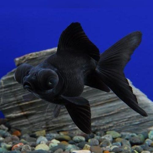 The Black Moor is a selectively bred black variety of the telescope fancy goldfish. These are one of the most popular varieties of Goldfish in the hobby and given proper care, they can live for up to 20 years! The aquarium should be spacious and at least 1.5m long for one fully grown adult Black Moor. Because these fish grow very fast, it is advised that they are housed in the largest possible aquarium from the outset, especially as they are messy fish and larger aquariums stay stable for longer. Efficient filtration is essential and it needs to be able to handle copious amounts of waste. Plants can be added to the aquarium, but will need to be replaced periodically as most goldfish enjoy eating and uprooting plants.