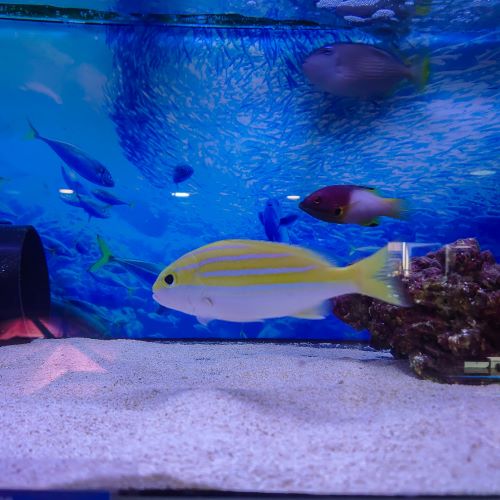 They’re not particularly aggressive and can be kept with a range of other fish, but as it is a carnivore and a large fish, small timid species should be avoided. This fish is part of a rare mimicry relationship with Mulloidichthys mimicus, the mimic goatfish which is remarkably similar in appearance. The goatfish will school alongside snappers to avoid being targeted by predators.