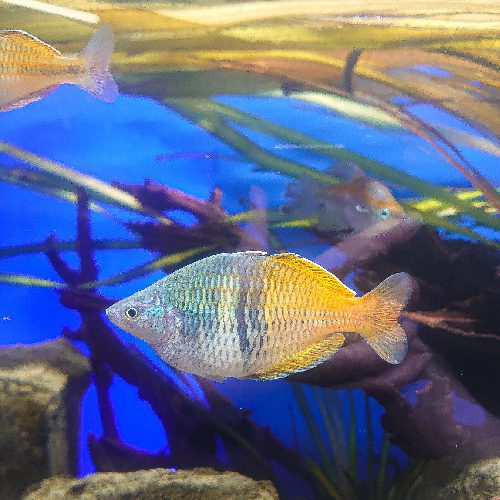 Boesemanis are often overlooked in shops as the juveniles aren’t much to look at in comparison to adults. But once they settle into the home aquarium, the soon start to colour up to their full adult glory.