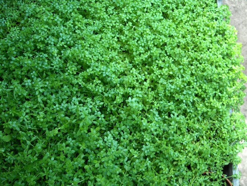 Callitriche (starwort) – British native oxygenating plant with masses of bright green leaves which reach the surface of the water forming attractive rafts. The submerged leaves provide oxygen & cover for a wide range of pondlife. It also makes an excellent spawning site for goldfish in the summer. Grows in still or moving water so ideally suited to pools, waterfalls or streams