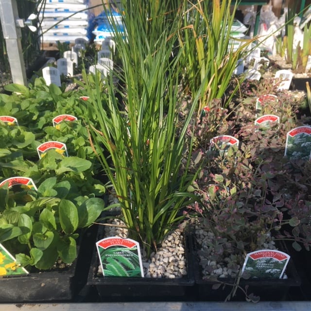 Native British sedge with bright green leaves and drooping flower spikelets. Provides excellent habitat for pondlife and grows in deeper water than other natives sedges.