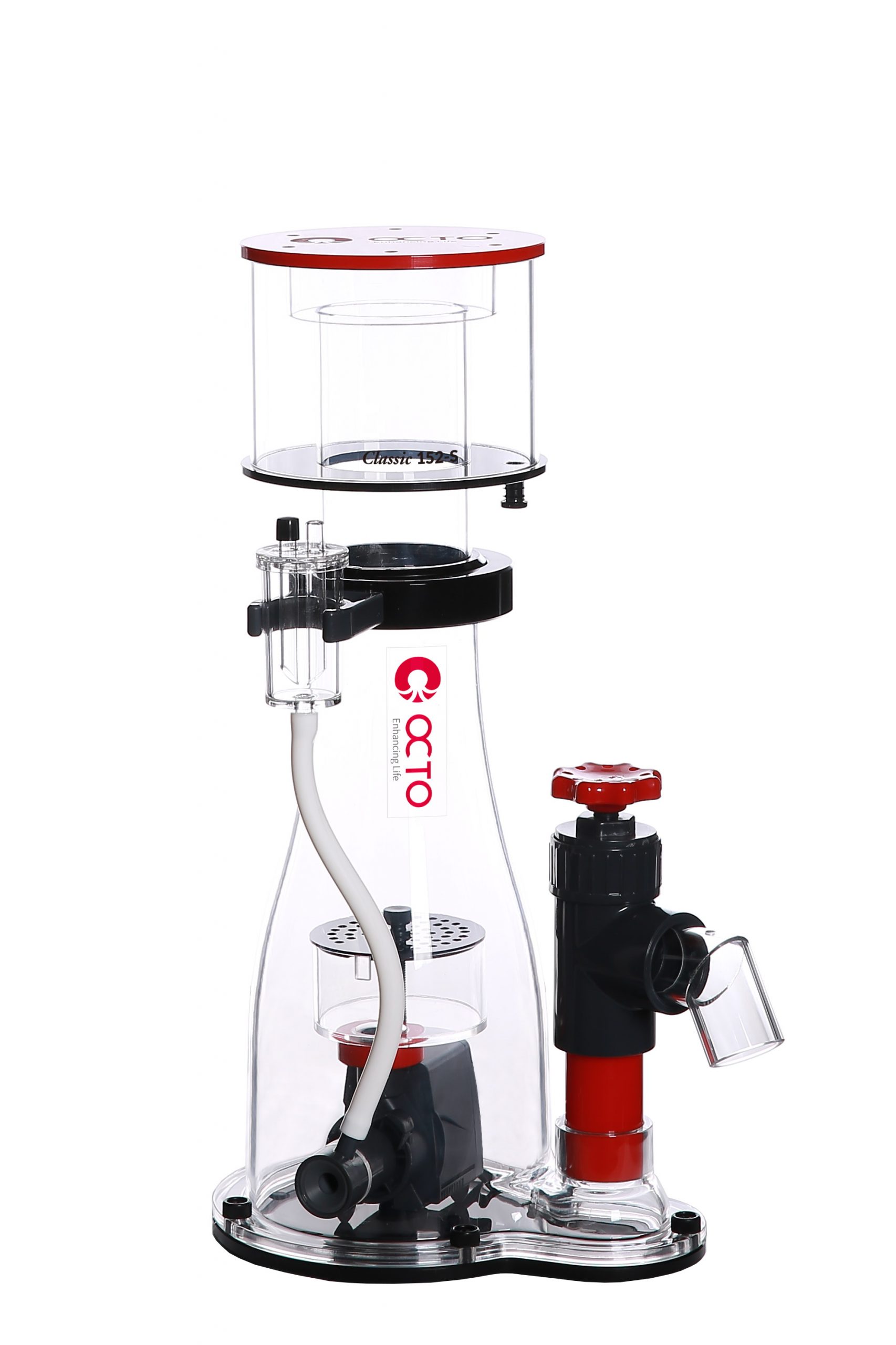 conical body Space saving In sump skimmer Upto 600 litres A member of the Reef Octopus Classic Series, this popular in sump skimmer will provide great filtration. As with every Reef Octopus protein skimmer, the Classic In sump skimmer is constructed of high-quality cast acrylic and features an easy to adjust gate valve, a quick release neck for easy cup removal, cup drain, bubble diffuser, o-ring sealed union pump mount, air shredding Aquatrance pinwheel pump and air silencer. Power – AQ-2000s 10w Footprint: 265mm x 205mm Height: 525mm