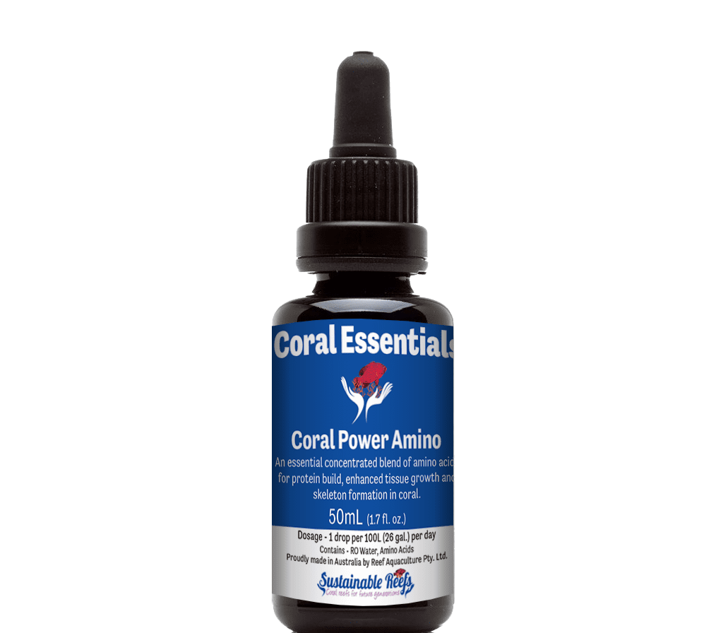 Our Coral Essentials, Coral Power Amino is a concentrated blend of essential amino acids for marine aquariums. It is essential for enzyme production, tissue growth and skeleton formation. Corals also require amino acids to build protein for tissue growth and also for synthesis of the organic matrix which regulates and accelerates calcium carbonate deposition in the skeleton otherwise known as calcification (Allemand et al. 2004). This organic matrix is a framework of proteins and other compounds that are essential to bio-mineralisation. To ensure growth enhancement of SPS corals, maintain a dosing plan as detailed below. Variances above and below the recommended dosing can be made depending on your own tank conditions and density of coral present. Increased levels of Amino Acids can be readily utilised by coral. We do not recommend dosing at high levels if there are elevated phosphate and nitrate levels in your aquarium. The application of high doses of Coral Power Amino to aquariums with elevated phosphate and nitrate levels can result in algae outbreaks.