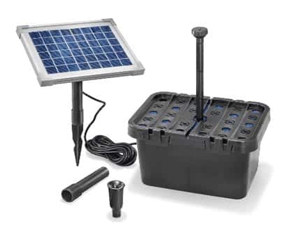This set comes with an included Solarshower 300 – Full pond filtration with no mains electricity required.