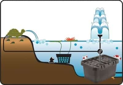 This Set comes with with SunnyPump 250 included Working a very similar way to an All-in-One pond filter, the pump fits inside the box and the whole box is submerged.