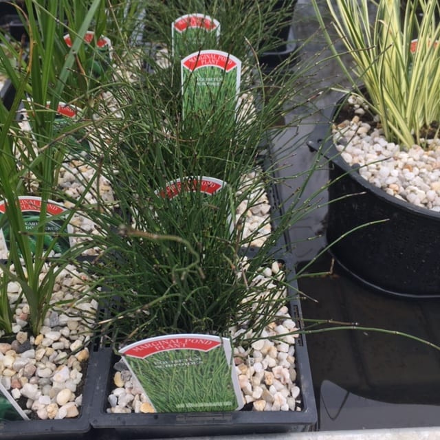 Equisetum scirpoides – dwarf horsetail rush. – An attractive foliage plant which forms compact clumps around the edges of ponds. Well suited to small and medium sized ponds in shallow water or bog garden.