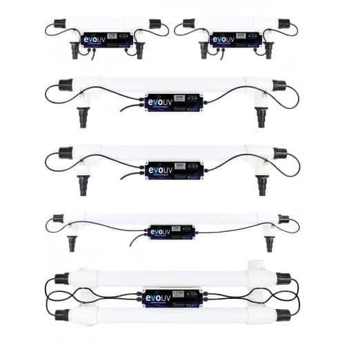 Evolution Aqua’s pond UV clarifiers deliver even greater performance and improved serviceability. Our range of six evoUV pond clarifiers are made using the very latest technology and design techniques, ensuring there is even water flow through the unit, and optimum ultraviolet light penetration.