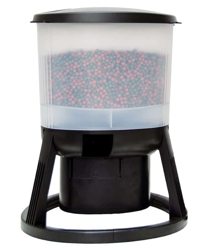 evoFeed Automatic is ideal for Koi ponds where large quantities of pellets are fed frequently, throughout the day. It is also ideal for holiday feeding.