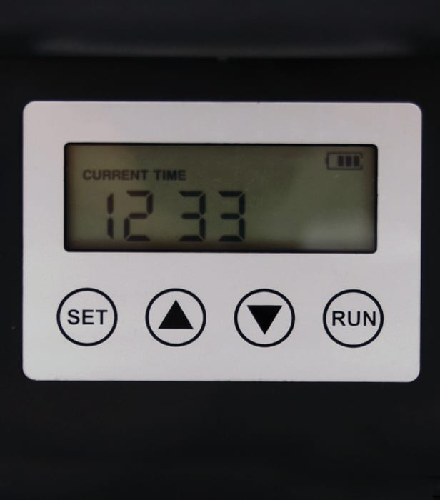 evoFeed Automatic is an automatic fish feeder suitable for medium and large ponds. The unit can be programmed to dispense food into the pond at timed intervals throughout the day. The distance the food is propelled, and the amount of time it is dispensed for, are also adjustable.