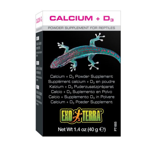 Calcium deficiency is a major dietary problem in captive reptiles. Exo Terra Calcium + D3 Powder Supplement contains high levels of phosphorous-free calcium as well as balanced amounts of vitamin D3 for optimal calcium absorption and to ensure long term health.