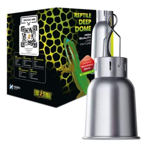 The compact design of Exo Terra’s Reptile Deep Dome NANO makes it an ideal fixture for smaller terrariums, like the Exo Terra Natural terrarium NANO or MINI. The Reptile Deep Dome NANO Fixture gives you the versatility of placing heat, UVB and/or light sources on your terrarium where needed. The highly-polished aluminum reflector increases the light, UVB and heat output significantly! Its heat resistant ceramic socket accommodates incandescent bulbs up to 40W max. The light can be easily switched on and off by the On/Off switch, mounted on the extra long power cord (180 cm – 6 ft).