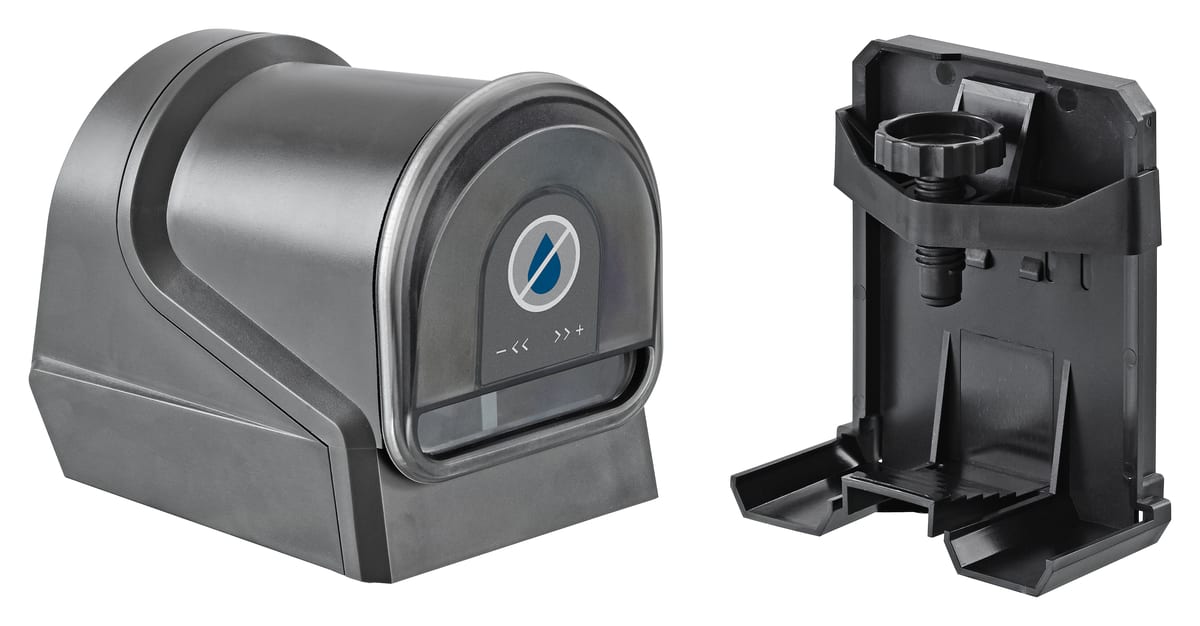 The FishGuard automatic feeder supplies the fish in the aquarium around the clock. Up to four feedings with three doses each per day can be pre-programmed via an LCD display. This makes it ideal for use in large, fish-rich aquariums. The mechanism with special sealing optimally protects the lining from moisture. A power supply for battery operation can be purchased optionally. This means that the device switches seamlessly to battery operation in the event of a power failure. The holder for attaching to the aquarium wall for open aquariums or terrariums can also be purchased as an option.