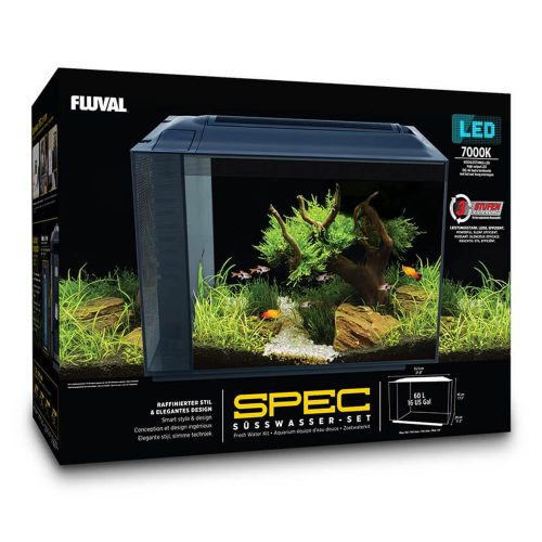The all new Fluval Spec aquarium series has a 7000k high-output LED light that is seamlessly integrated into a cleverly designed waterproof aluminium canopy. Combined with powerful 3-stage filtration compartment and oversized media, Spec may be small in size, but is certainly big on features. This is a perfect aquarium for smaller spaces, office desks and anywhere else that has limited space.
