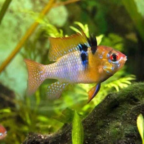 Frequent partial water changes are essential to the wellbeing of the Small German Ram as they are incredibly sensitive to elevated levels of Nitrates. Excellent water quality must be maintained at all times for these delicate fish. Tank mates should also be chosen carefully. They need to be able to thrive in soft acidic conditions and at higher temperatures as the Rams to best when it’s warmer. Several South American species of Tetra like cardinals, neons and rummies as well as corydoras will do great. Avoid any larger cichlids as they may stress the Rams out, which is likely to lead to sickness