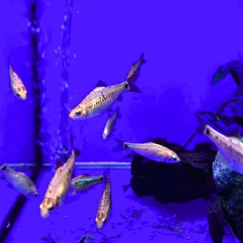 A planted aquarium would be ideal, but plants with soft and delicate foliage should be avoided as these barbs do enjoy nibbling at them. Give them plenty of swimming space! Robust plants like Java Fern and Anubias tend to be left alone. Temperatures should be at the lower end of the tropical scale and current should be medium for this species. These fish will spawn amongst plants, but will likely eat their own eggs shortly after.