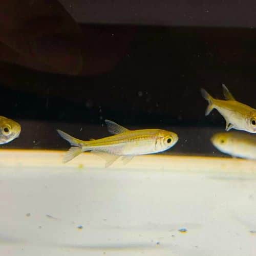 The Gold Tetra is a very pretty species from Brazil and Peru. They are one of the medium sized tetras, but nonetheless peaceful. As a shoaling species, they should be kept in a group of 6 or more specimens, but 10 or more will make this shy species feel more at ease. These fish are able to adapt to a wide range of conditions and be kept with most other species of community fish. When kept in the aquarium, these fish don’t actually turn a vivid gold as the colour comes from a naturally occurring parasite present in the water in their habitat. They will however have a golden hue under the right lighting. They are pretty nonetheless and worth keeping as a more unusual choice of community fish.
