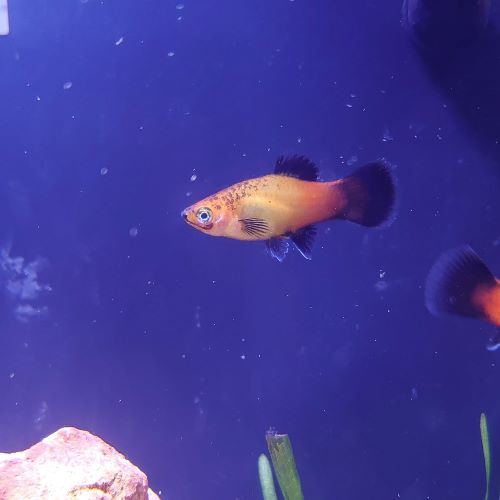 Like all livebearers, platies have a tendency to breed relentlessly and the males can be very persistent. As they are social fish, they need to be kept in groups of 6 or more individuals, ensuring that the females outnumber the males three to one. Getting an all male group however will guarantee population control. All female groups can be problematic as it isn’t uncommon for females to already be expecting when they are bought. As they are livebearers, the females will carry the eggs within themselves instead of depositing them. The eggs will eventually hatch and the female will quite literally give birth to the fry.