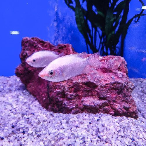 This fish gets its name from the way it appears to lock jaws or “kiss” other fish as a form of aggression. This movement of the mouth is specialised for grazing rocks and collecting plankton. These gourami really do prefer small particle foods in their diet, but there’s plenty of other things that can be offered, such as good quality flake food, green flake food, pellet foods, frozen foods such as mosquito larvae, brineshrimp, Mysis, krill etc. They are partial to green plant matter, so offer lettuce or cucumber from time to time. Plants may get eaten.