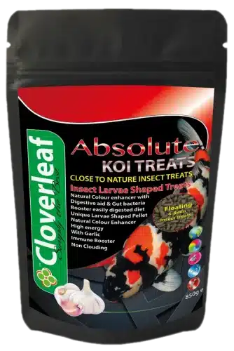 Absolute Koi Treats rapidly become soft by absorbing water whilst retaining its Unique Larvae shape Absolute Koi Insect Koi Treats are Nonclouding and will not discolour the pond water.
