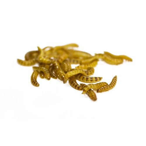 Buffalo worms are the larvae of a small beetle (Alphitobius diaperinus) and are about 1cm long. They are very nutritious due to their high protein and low fat content. They are quite tasty and most animals love them. Buffalo worms are about half the size of a yellow mealworm.