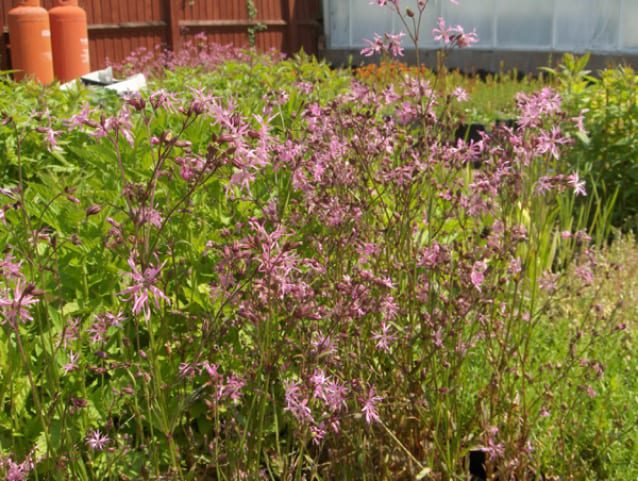 Lychnis flos-coculi (ragged robin) – British native wetland plant which grows in damp soil/ very shallow water. Pretty pink flowers visited by bees & butterflies, an excellent wildlife plant.