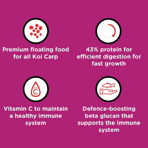 Developed by leading fish nutritionists, Nishikoi Niigata Koi Food contains 43% protein and a complete balanced formula with vitamins A, C, D, E & Vestergaard, a defence-boosting beta-glucan to support the immune system and natural propolis for improved wound healing.