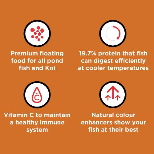 The 19.7% highly digestible, vegetable-based, low protein in Nishikoi Wheatgerm diet is ideal for feeding at low temperatures in spring and autumn. The high wheatgerm content improves digestion at cooler temperatures when the fishes metabolism is lower, keeping ammonia excretion to a minimum. This is vital at periods of reduced filter performance during low temperatures.