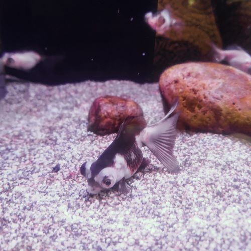 The Panda Moor is a selectively bred black & white variety of fancy goldfish. These are one of the most popular varieties of Goldfish in the hobby and given proper care, they can live for up to 20 years! The aquarium should be spacious and at least 1.5m long for one fully grown adult Moor. Because these fish grow very fast, it is advised that they are housed in the largest possible aquarium from the outset, especially as they are messy fish and larger aquariums stay stable for longer. Efficient filtration is essential and it needs to be able to handle copious amounts of waste. Plants can be added to the aquarium, but will need to be replaced periodically as most goldfish enjoy eating and uprooting plants.