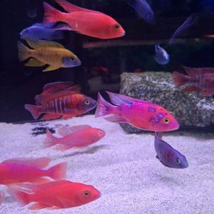 Their aquarium should be large and dressed with plenty of rocks to act as a form of real estate for the fish to establish their territories on. These cichlids need very hard water with a high pH and this is typically achieved by using ocean rock and/or coral sand. With that said, dark substrate brings out the colours better and makes the peacocks feel safer. KH buffers are an excellent alternative to coral sand. Plants are not recommended for this species as they will most likely eat them. They are a territorially aggressive species. Most keepers will overstock them in very large numbers as this spreads out the aggression and reduces the chance of any single fish getting singled out. For this reason you will need excellent filtration and frequent water changes to help keep the parameters under control.