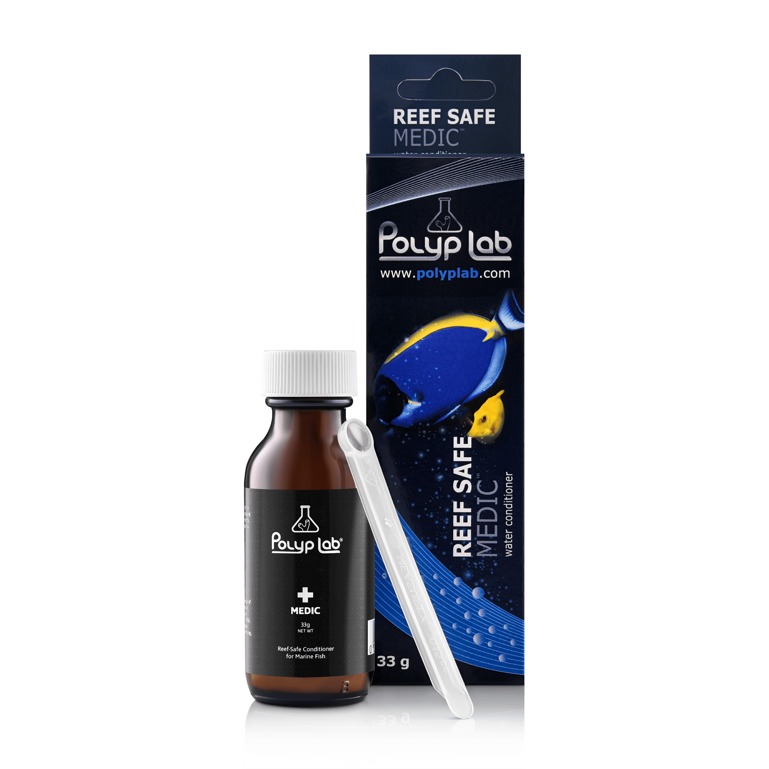 Medic is a highly effective water conditioner used to de-pollute water in both marine and freshwater environments. It contains a reef-safe oxidizing agent and is particularly effective against: Marine Ich – Crytpocaryon irritans, Freshwater Ich – Ichthyophthirius, and Marine Velvet – Amyloodinium ocellatum.