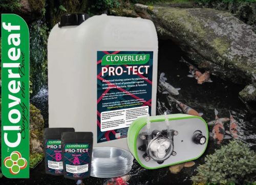 Cloverleaf PRO-TECT is the best aquatic disinfectant available. Effective against the vast majority of commonly found parasites, fungus and wound attracted bacteria. Assists fish to naturally regain strength and self-heal when suffering from wounds by continuously releasing a scientifically measured proven formulation developed for use in ornamental ponds and pools it provides constant and consistent protection for your fish 24/7 without affecting the Good bacteria bed in your filter preventing serious infections, ulcers and fish-killing mass parasite infestations.