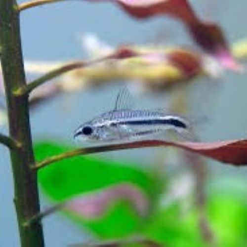 The Pygmy Corydora is the smallest of catfish available in the hobby. These delicate little fish make excellent bottom feeders for nano communities with their peaceful disposition and busy activities around the tank. The aquarium must have soft sand substrate to protect this little cory’s delicate sensory barbels and they require soft, acidic water. Bog wood and plenty of live plants will be welcome as they’ll provide both stimulation and valuable hiding places. The addition of floating plants will help diffuse the light. providing shady areas that the cories may enjoy. Frequent partial water changes are essential as these fish are very sensitive to elevated nitrate levels.