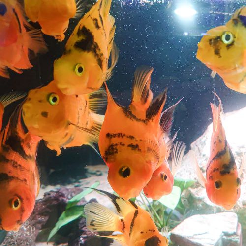 Once settled, these parrot cichlids are fairly peaceful, friendly and very interactive with their owners.