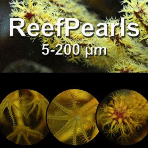 Reefpearls are (zoo)plankton mimicking feeding pellets for corals and other filterfeeders. They have a neutral buoyancy, high nutritional value and low levels of inorganic phosphates. Reefpearls contain microencapsulated particles which are stable for 4-24 hours in the watercolom and have a low leakage of nutrients, thus floating around for a long time and allowing a long feeding time for your animals. Reefpearls consists of a mixture of different pellet sizes, ranging from 5-200 µm (microns), that is mimicking the natural sizes of plankton. They can simply be dosed by using a automated fish feeder. Reefpearls contain the essential levels of phosphates, however, in contrast to most other feeds, these phosphates are in an organic form (attached to proteins and DNA) instead of inorganic phosphates (PO4) . This will result in lower pollution of your tank and better uptake of this essential element by your corals and other filterfeeders. Ideal for LPS corals and (small) fish and invertebrates