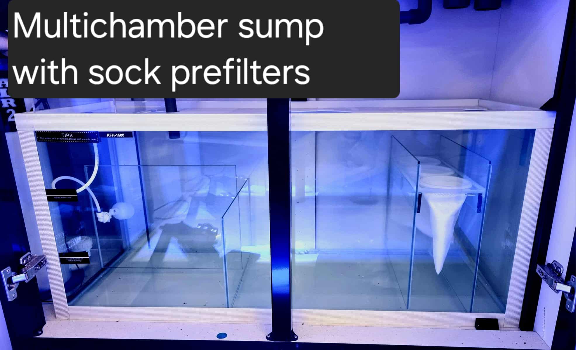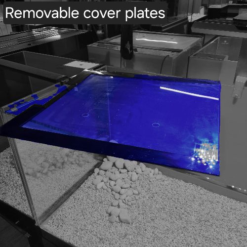 The multi chamber sump is suitable for a number of purposes and comes complete with cover plates to reduce evaporation so fewer top-ups are required. It is easily accessible with extra head room in the cabinet and also provides additional space outside of the sump for all of your dry equipment. There is enough room for additional equipment like skimmers and phosphate reactors.