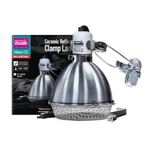 The Arcadia Reptile Reflector Clamp Lamp is a fully inclusive kit, containing everything you need to use Mercury vapour and Heat Lamps safely over an open table or fitted inside of a vivarium with the free vivarium fittings kit.