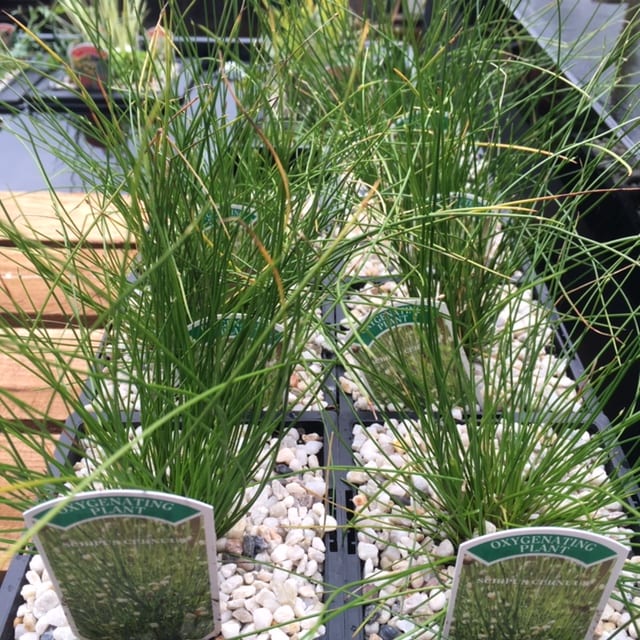 Scirpus cernuus – cotton bud rush is a bright green rush with slender leaves. Like most grasses, it grows in attractive clumps, providing good habitat for wildlife and adding texture to the water margin. Submerged shoots assist with oxygenation and make excellent spawning grounds for goldfish. Ideal for small to medium sized ponds. This lovely plant creates a fiber optic effect, especially when the small white flowers appear at the long slender stems.