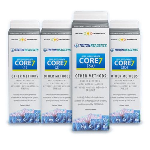 A complete suite of dosing solutions designed to supplement and maintain near natural sea water parameters for reef aquaria using other reef-keeping methods (non-Triton Method). Using Core 7 Reef Supplements aquarists can now have the benefits of Triton’s advanced supplement formulation and ease-of-use without having to follow the Triton Method itself. Core 7 is revolutionary because they are the most concentrated solutions ever developed, no other supplementation method in the world comes close in terms of value and stability. Core 7 solutions have been re-formulated to be even more stable and include a raised pH to promote coral growth.