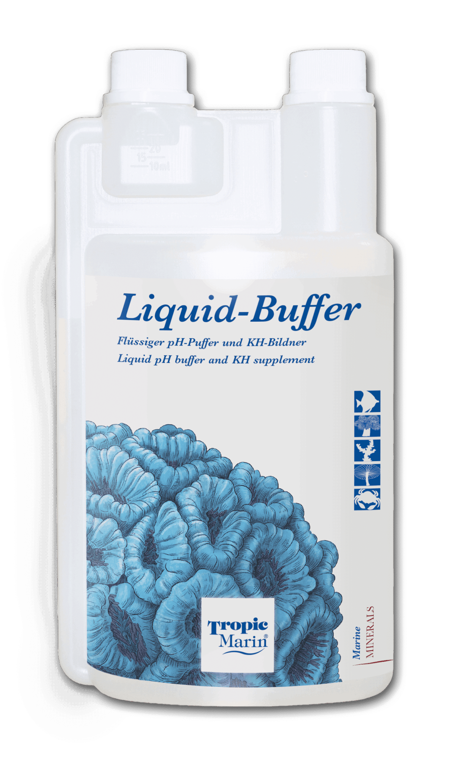 Marine aquariums need optimal buffering for good coral growth with a stable carbonate hardness between 7 and 9 ° dH. In addition, fluctuations in the pH, e.g. in hyperacidity by excretions and by decomposition processes, quickly cause stress and disease in all aquarium dwellers and thus shorten the life of the nurslings. Tropic Marin® Liquid Buffer effectively increases the alkalinity and stabilises the pH in the optimal range between pH 8.1 and 8.4.