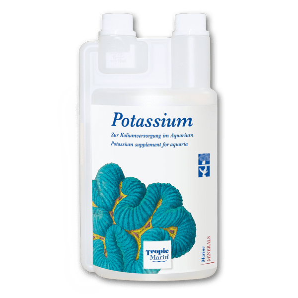 Dosage: Tropic Marin® Potassium contains 100 mg/ml of potassium. Adding 10 ml of Tropic Marin® Potassium to 100 l (26 gallons) of water will increase the overall aquarium potassium concentration of the water by 10 mg/l. No more than 20 ml of potassium should be added to 100 l (26 gallons) water on a daily basis.