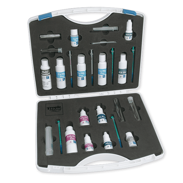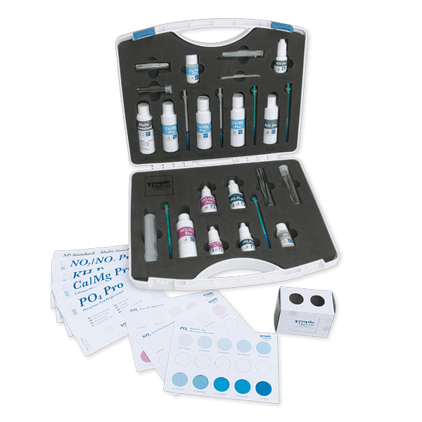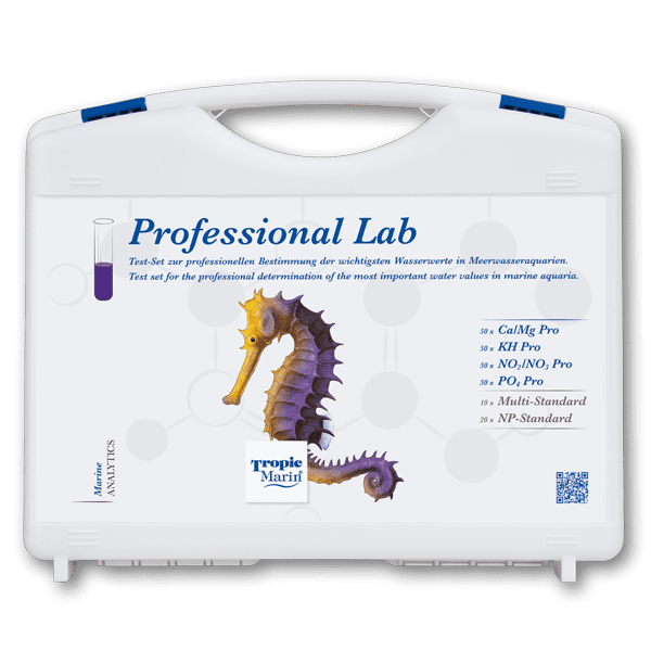 The Test-Set Tropic Marin® Professional Lab contains the most important tests for the highly precise determination of water values. The carbonate hardness, phosphate concentration, nitrite and nitrate content as well as the calcium and magnesium concentrations of the water have a decisive influence on the well-being of fish and invertebrates in saltwater aquariums. With this test set all these values can be controlled.
