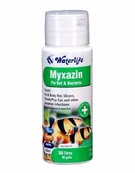 Waterlife Myxazin Fin Rot and Ulcer Fish Treatment is used as a broad spectrum bactericide for Ulcers, Fin-Rot, Body Rot, cloudy eyes, pop eye, raised veins, redness, swim bladder issues and other symptoms of bacterial related diseases in all aquaria.In addition, Myxazin may be used as a prophylactic treatment (for disease prevention) in order to reduce the risk of disease, when new fish are introduced.