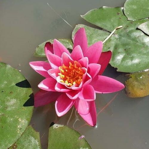 Yuh Ling Dwarf Lily is a dwarf pond lily with attractive star shaped blossoms in dark pink or magenta with a yellow centre. Flowering should be expected from June through to September. This lily is ideall suited to small and medium sized ponds, shallow ponds and water features.